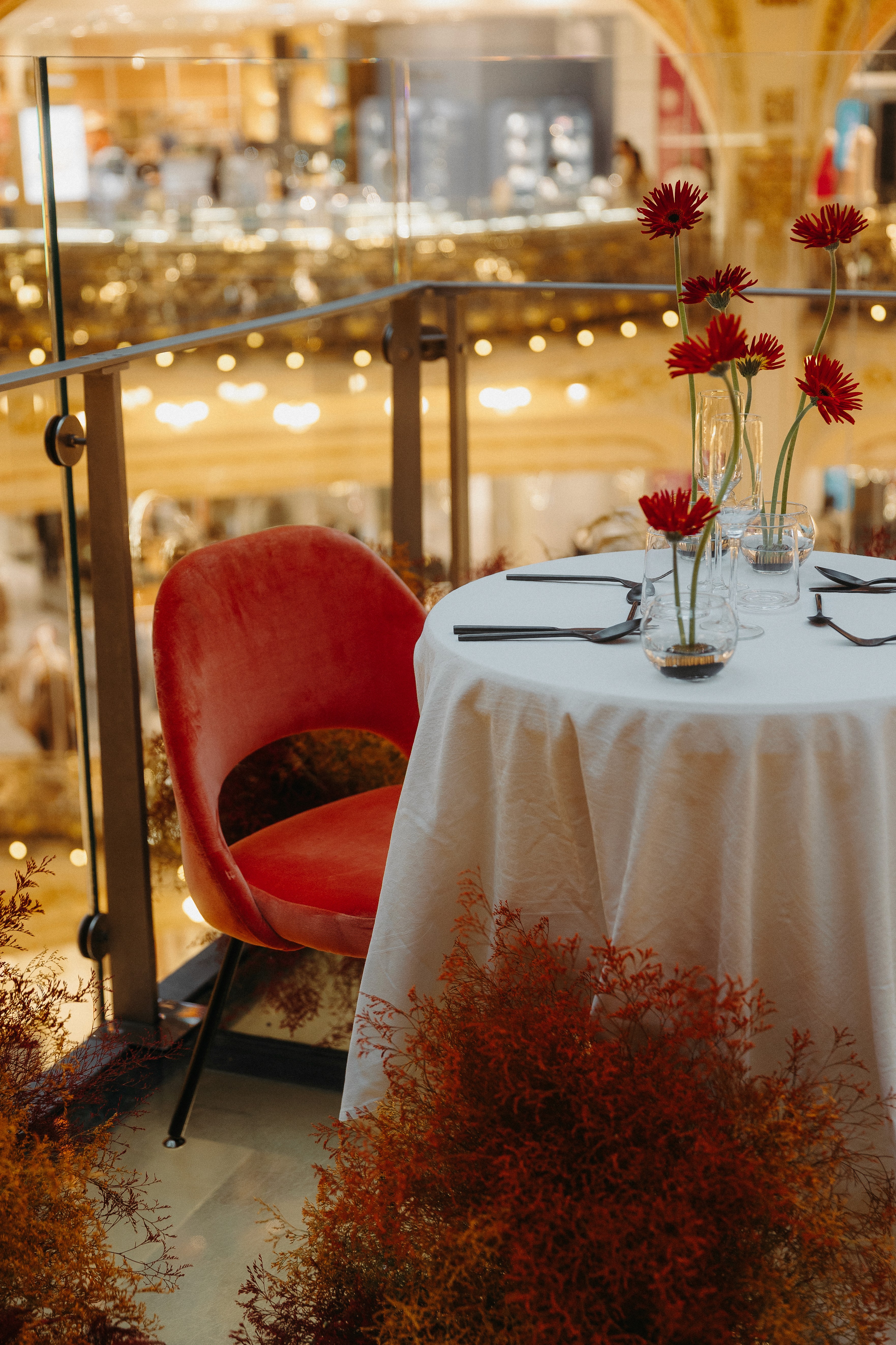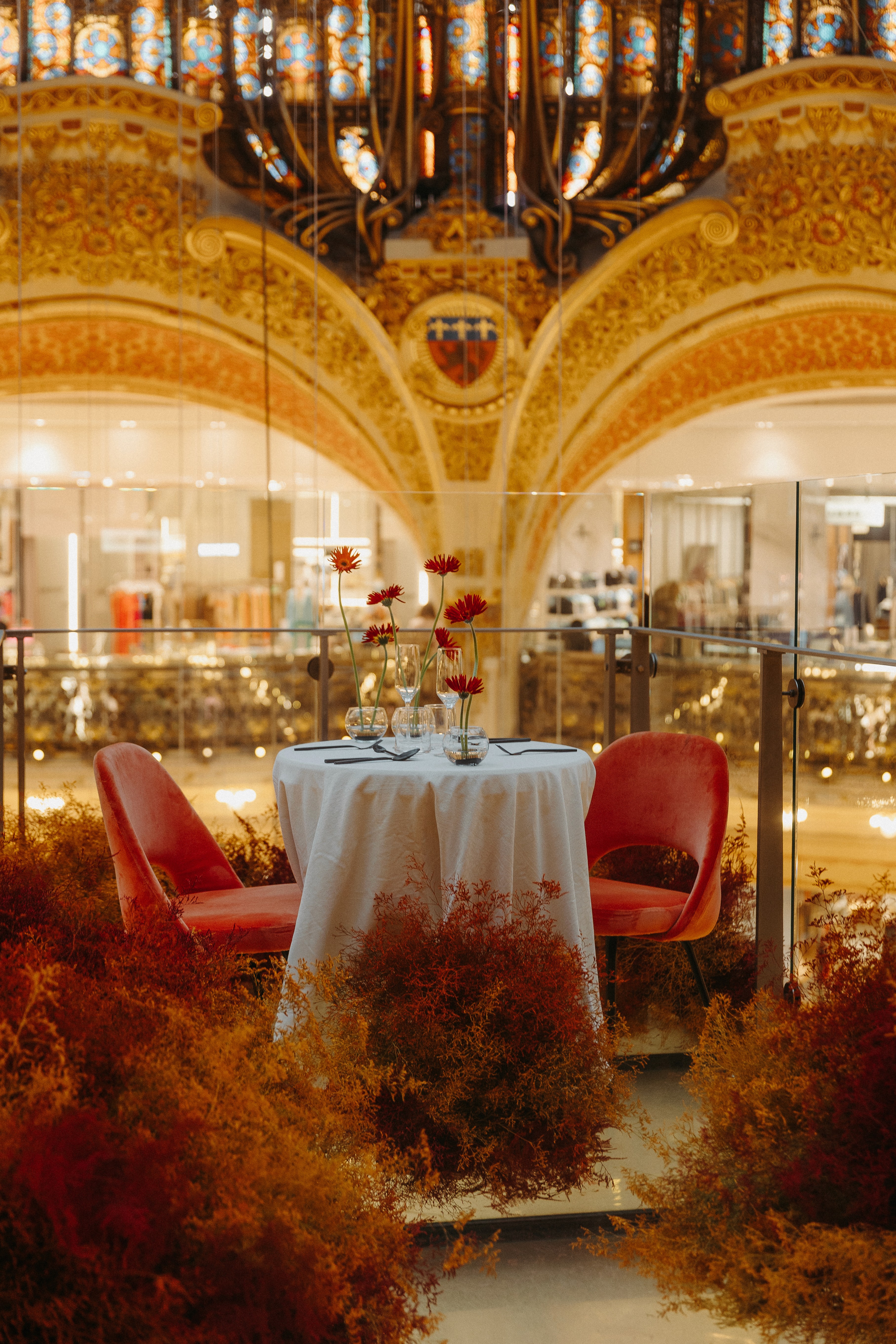 Sous la coupole des Galeries Lafayette, Anthony Denis a imaginé une installation florale délicate pour un dîner exceptionnel. Ces scénographies pensées avec soin, viennent sublimer l’espace et dialoguer avec la lumière et l’architecture du lieu.