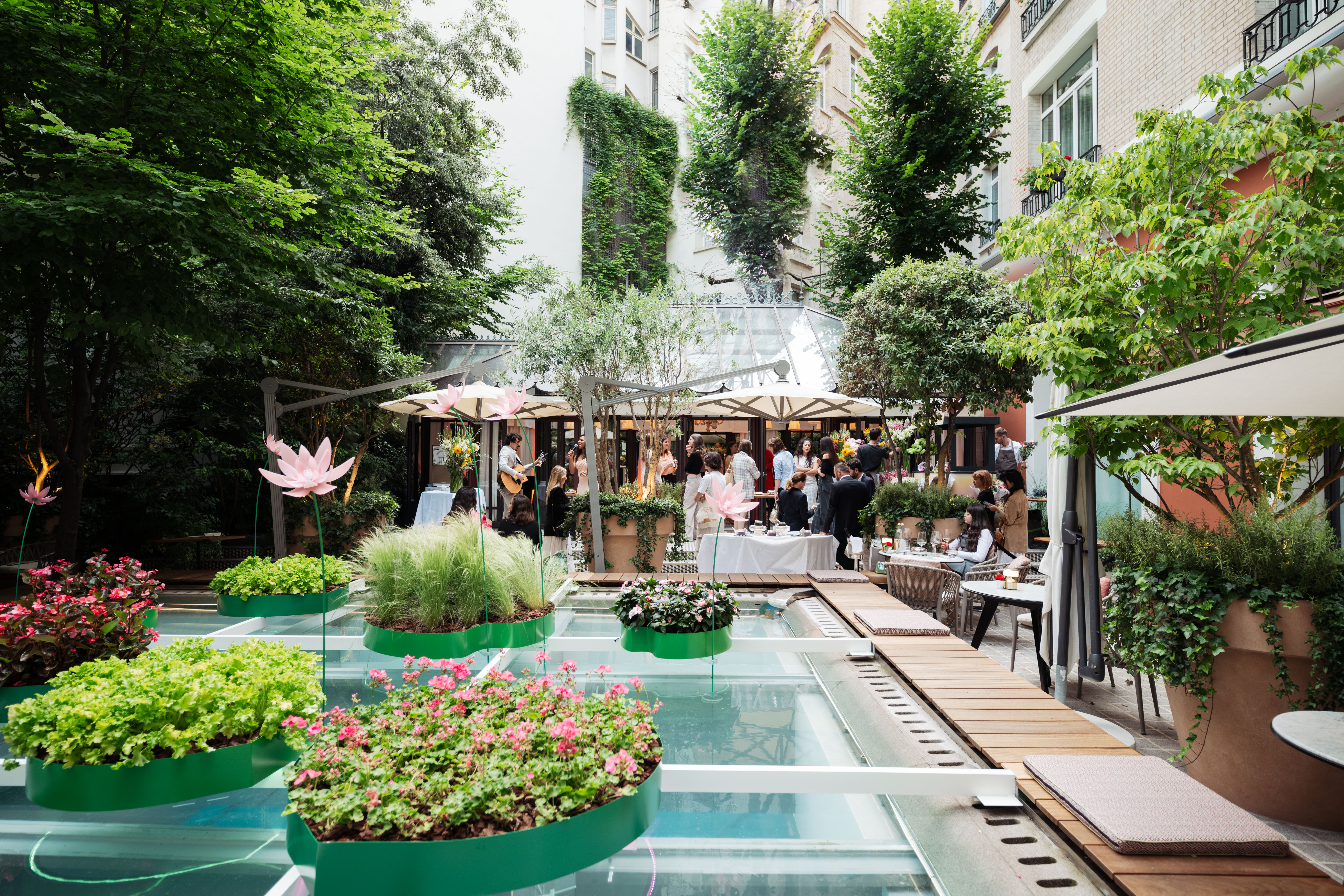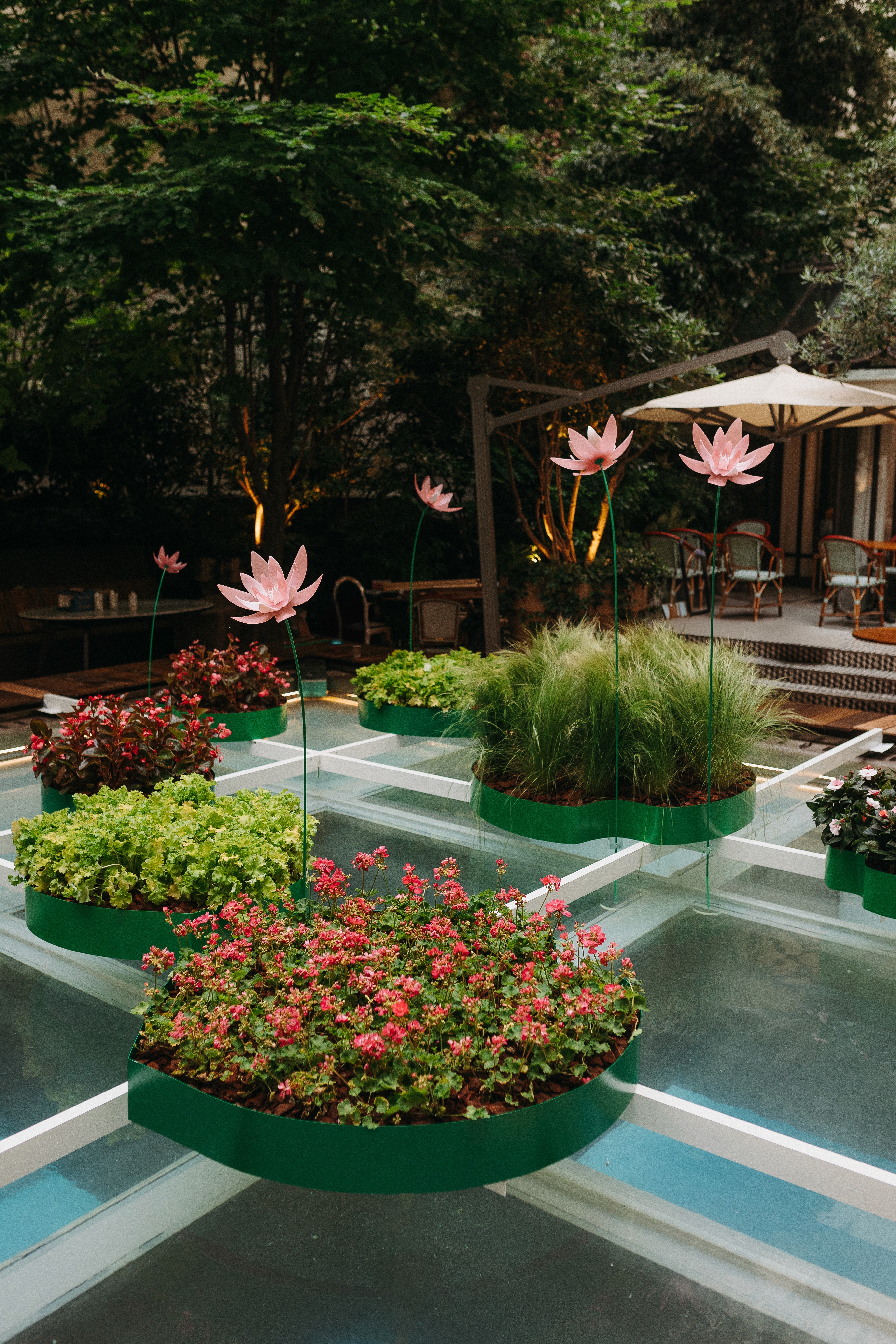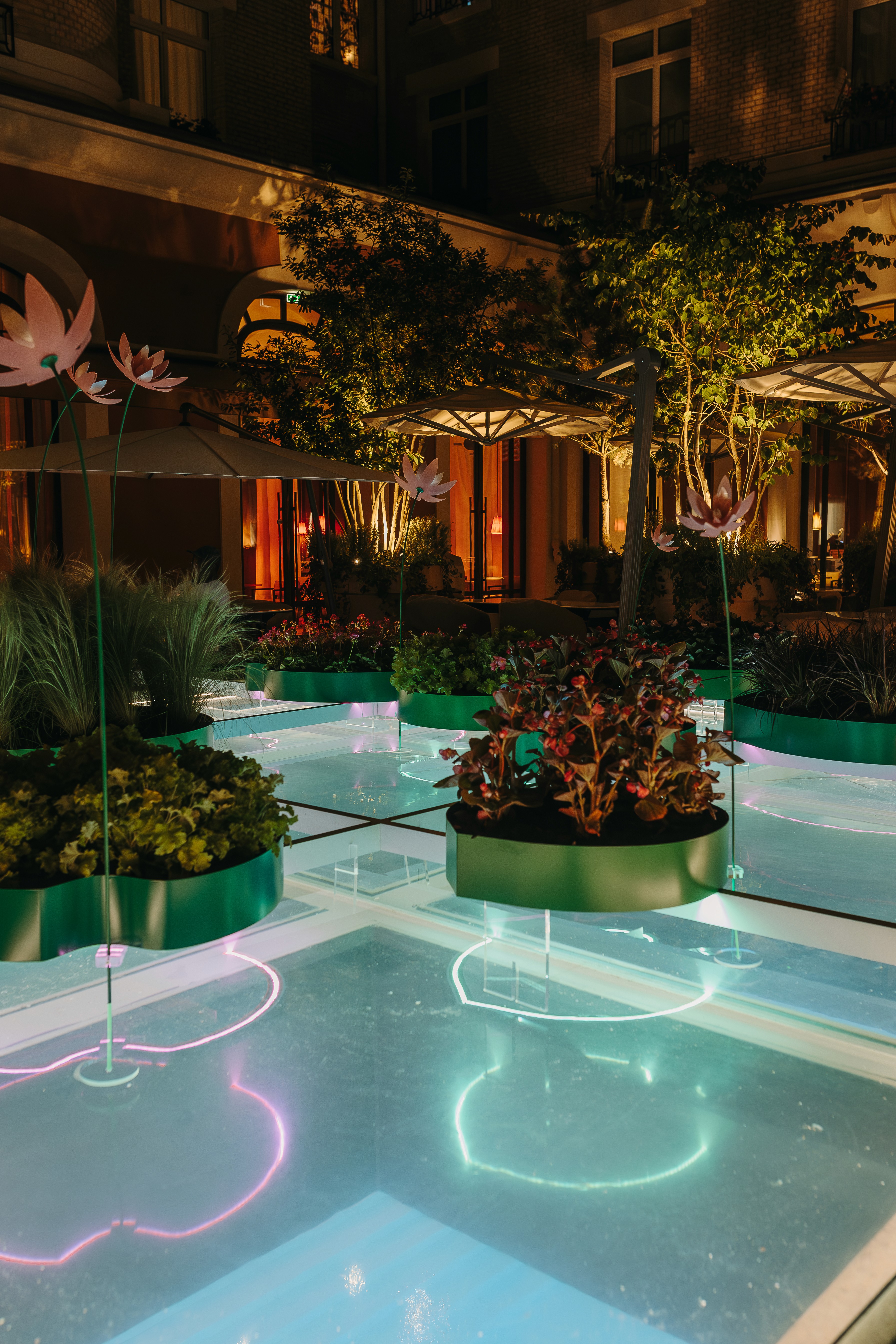 Le projet des nénuphars conceptuels, sur le bassin du Royal Monceau, transforme l’espace en un paysage poétique et immersif. Jouant sur la couleur, la lumière et le reflet, l’installation offre aux visiteurs une expérience visuelle et sensorielle unique, incarnant parfaitement l’approche artistique d’Anthony Denis, alliant esthétique, émotion et innovation florale.